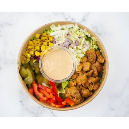 Klasyczna sałatka gyros z soczystym kurczakiem i sosem koktajlowym